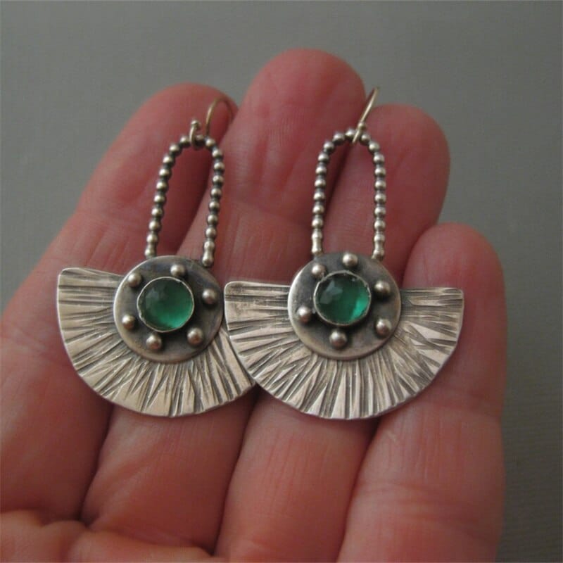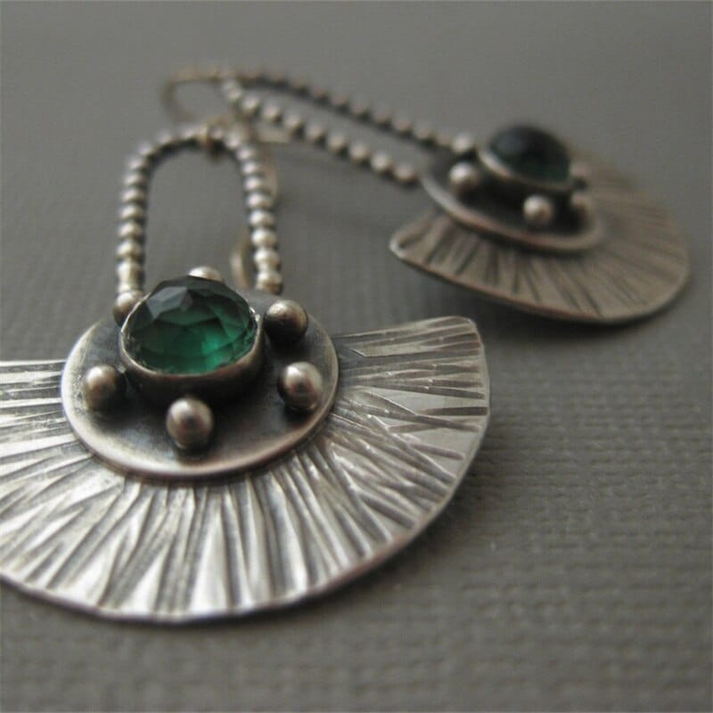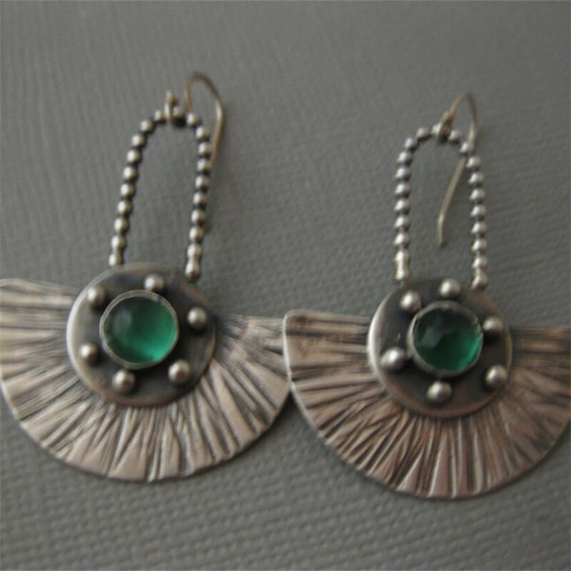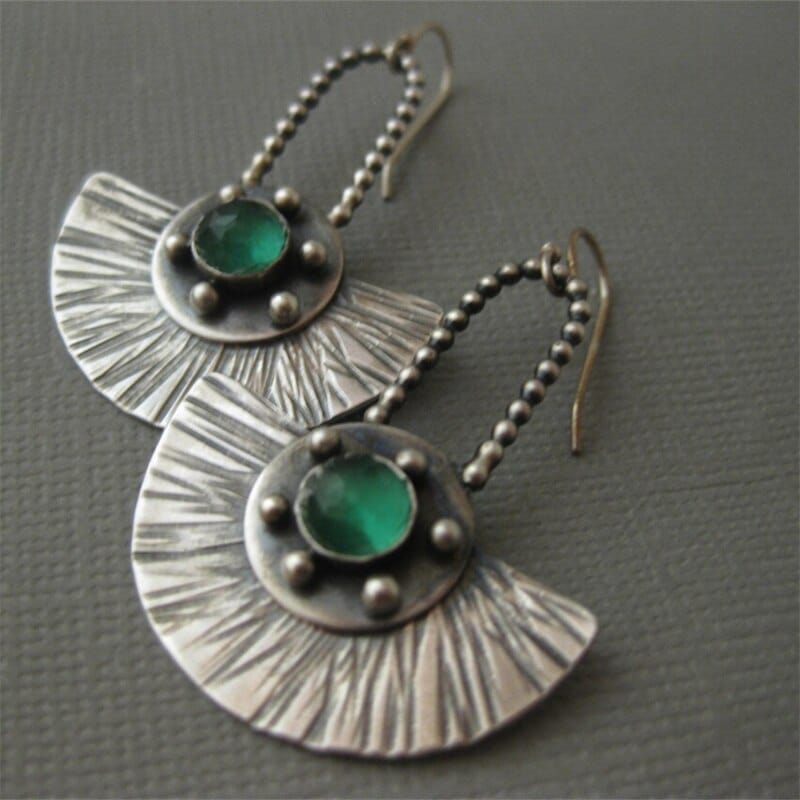 Attractive Fan Shaped Geometry Green Stone Earrings