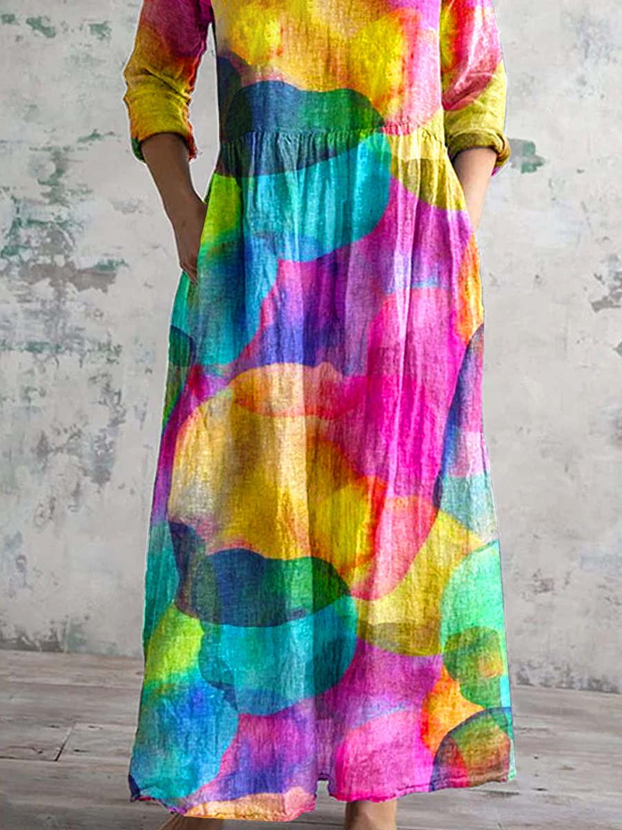 Women's V-Neck Rainbow Gradient Pattern Dress with Pockets